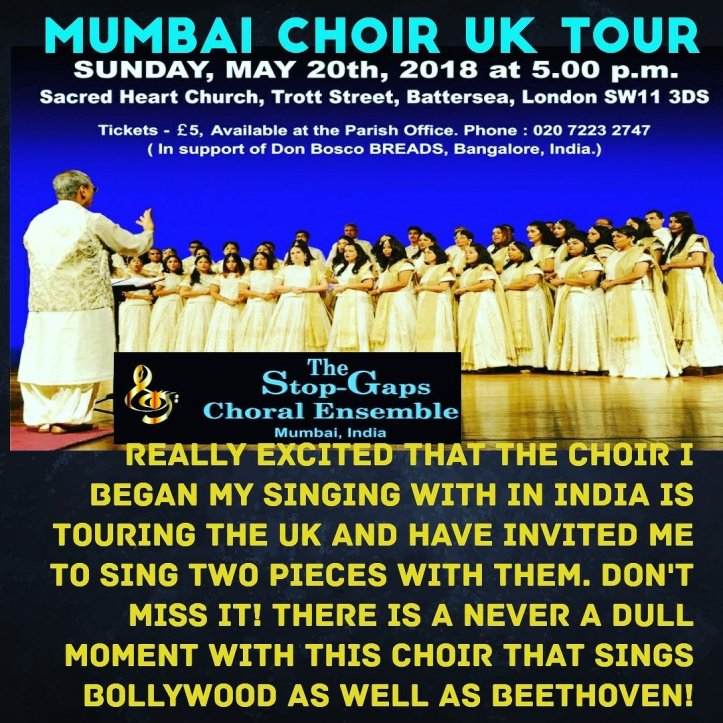 Seven years after leaving India, I am delighted to hear that the same choir is touring the UK and the icing on the cake is that they have invited me to sing a couple of pieces with them.